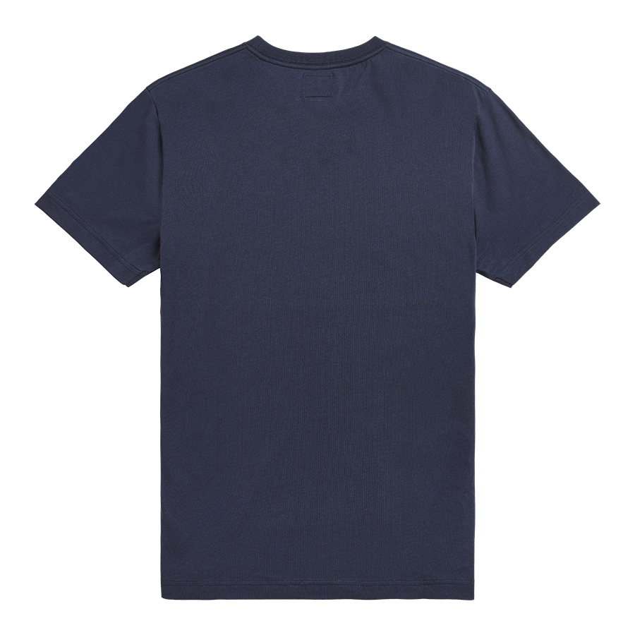 Classic 100% cotton 160g weight Navy tee featuring high quality embroidered Triumph logo in Dull Gold and new signature Triumph-branded woven badge towards the lower hem.