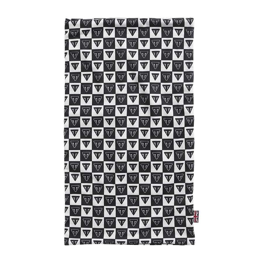 Enjoy instant additional lightweight comfort. The Prix Neck Tube is available in a premium Black and White checked pattern, with repeated Triumph triangle badge detailing throughout. One size fits all.